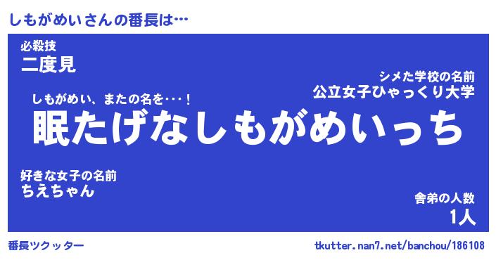 | 2回繰り返すあだ名 | 『しもしも』『ししもも』『ぬぷぬぷ』 |