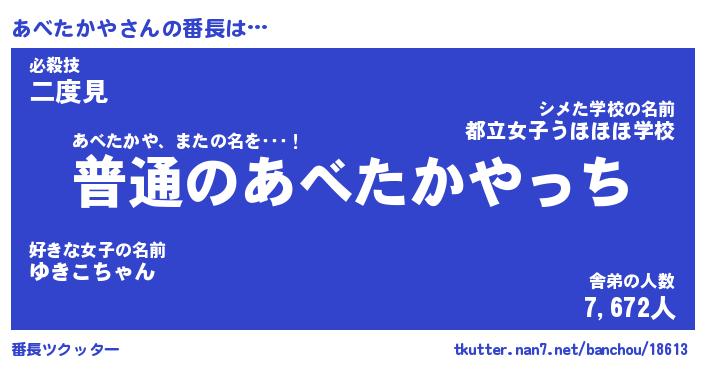 | ファンタジー風あだ名 | 『アベフェル』『エターナルアベタカヤー』 |