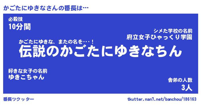 | 女子向けラノベタイトル風あだ名 | 『(仮)かごたにゆきなのやんごとなき事情』 |