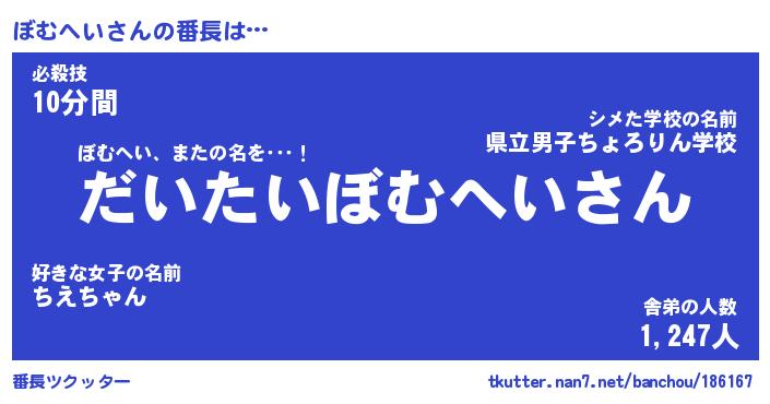 | 意味不明あだ名 | 『ペロリンぼむへい』『永久保存ぼむへい』 |