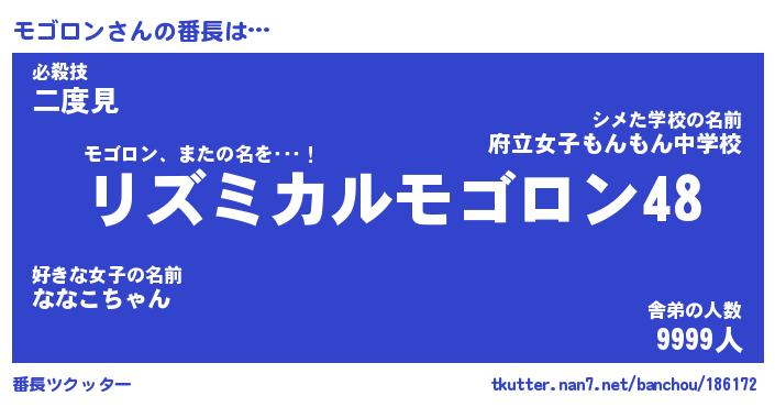| 意味不明あだ名 | 『ペロリンモゴロン』『永久保存モゴロン』 |