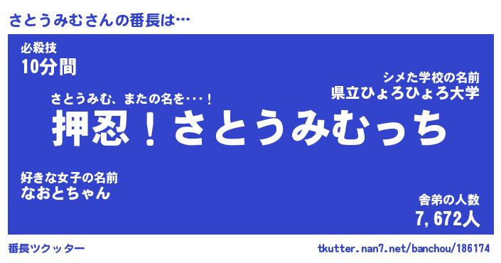 | ファンタジー風あだ名 | 『サトフェル』『エターナルサトウミムー』 |