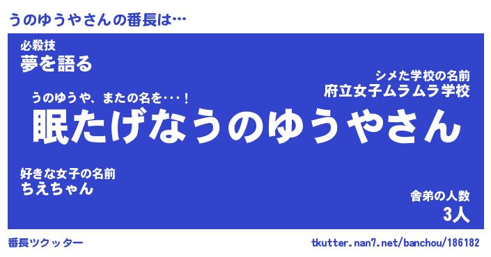| ファンタジー風あだ名 | 『ウノフェル』『エターナルウノユウヤー』 |