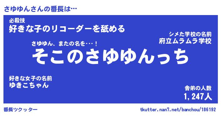 | ヒーロー風カッコイイあだ名 | 『スーパーサユユン』『暗黒騎士サユ』 |