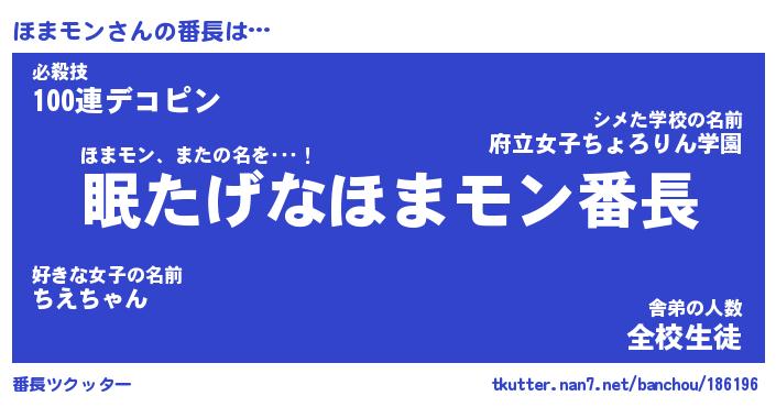| 意味不明あだ名 | 『ペロリンほまモン』『永久保存ほまモン』 |