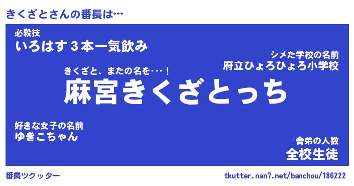 | ヒーロー風カッコイイあだ名 | 『スーパーキクザト』『銀牙騎士キク』 |