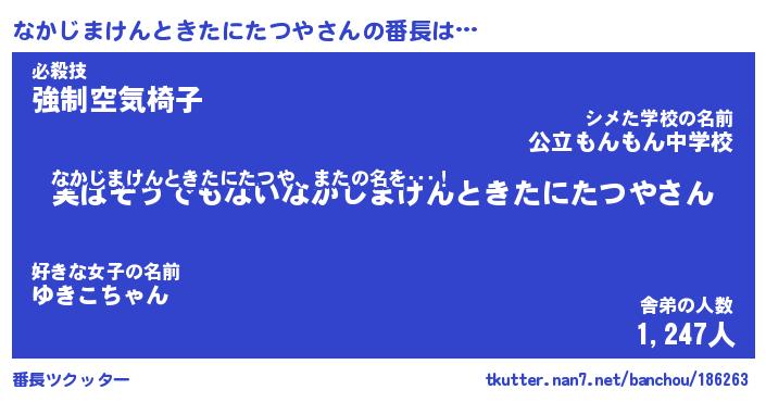 | 伝説のあだ名 | 『封印されしスナイパーなかじまけんときたにたつや』 |