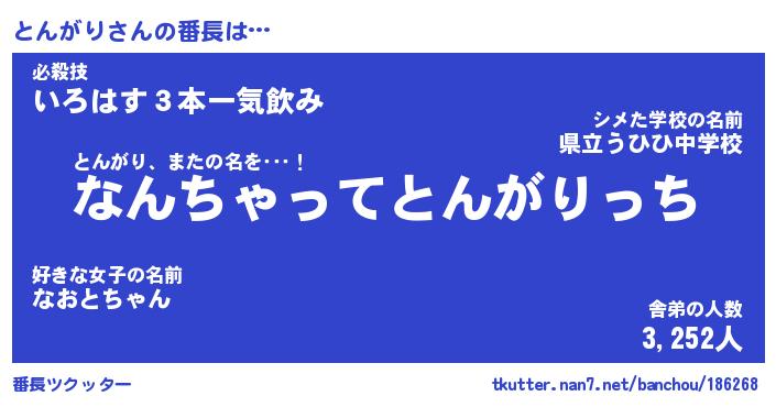 | 意味不明あだ名 | 『ペロリンとんがり』『永久保存とんがり』 |