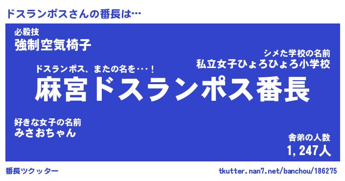 | ヘコむあだ名 | 『ドスもー』『つくし』『ドスっぺ』 |