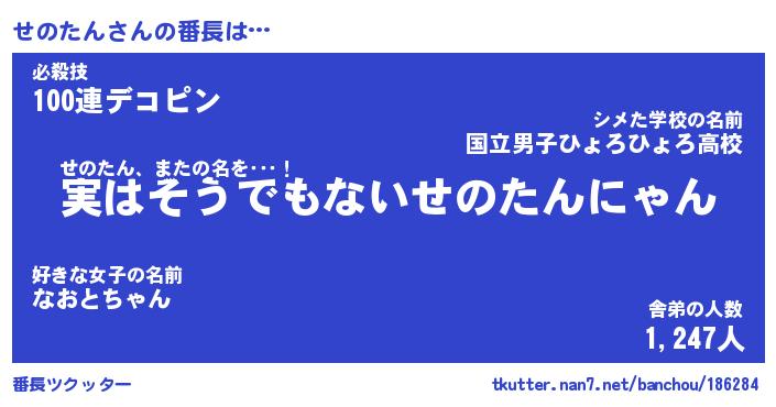 | 肩書あだ名 | 『せのたん御曹司』『せのたん大統領』 |
