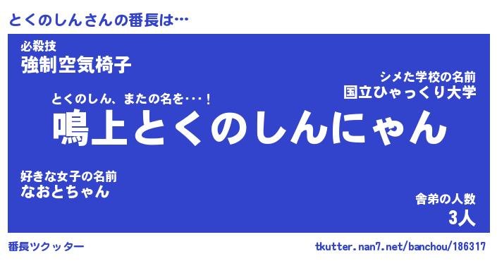| 肩書あだ名 | 『とくのしん店長』『とくのしん総理大臣』 |