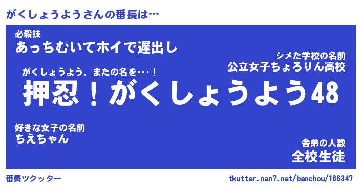 | ポケモン風あだ名 | 『ガクチュウ』『ガクシダネ』 |