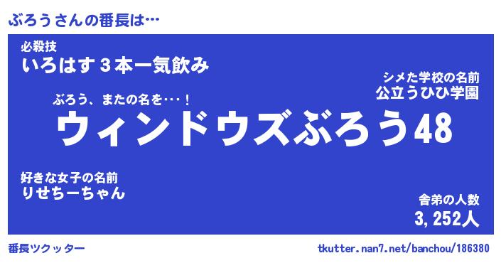 | 意味不明あだ名 | 『ペロリンぶろう』『ぶろうフォーエバー』 |