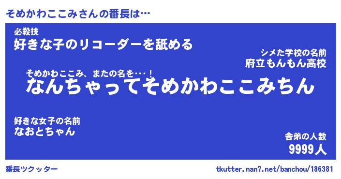 | 意味不明あだ名 | 『ペロリンそめかわここみ』 |