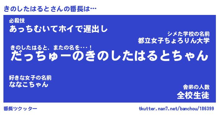 | 男性向けラノベタイトル風あだ名 | 『きのしたはるとの憂鬱』 |