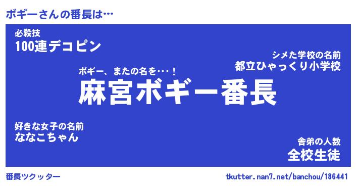 | 意味不明あだ名 | 『ペロリンボギー』『ボギーフォーエバー』 |