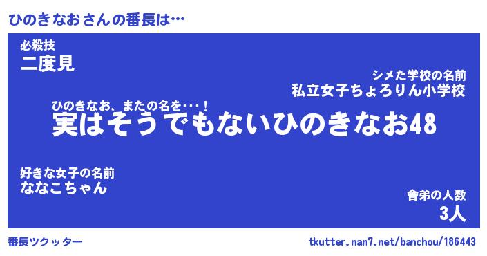 | 肩書あだ名 | 『ひのきなお店長』『ひのきなお大統領』 |