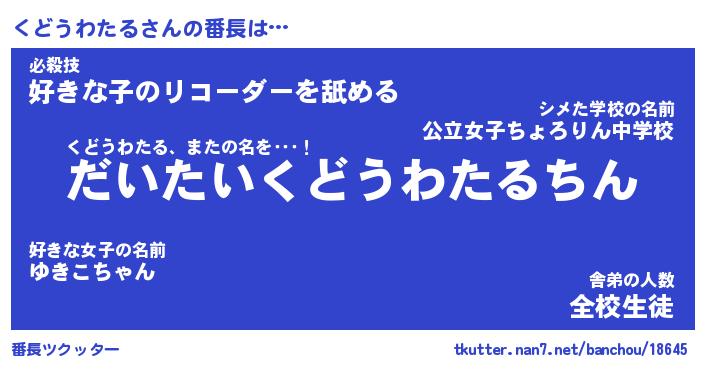 | 肩書あだ名 | 『くどうわたるCEO』『くどうわたる塾長』 |