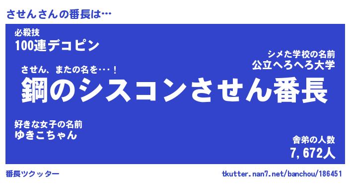 | 意味不明あだ名 | 『ペロリンさせん』『させんフォーエバー』 |