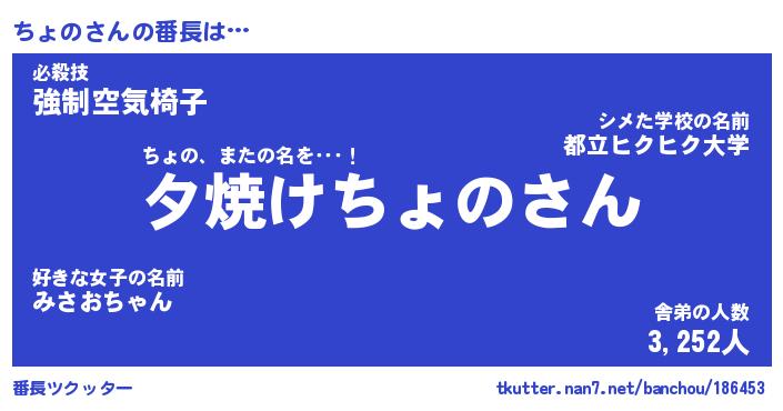 | 伝説のあだ名 | 『封印されしスナイパーちょの』 |