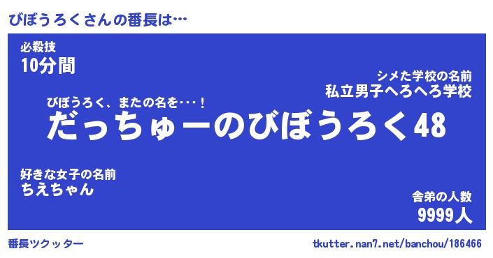 | 2回繰り返すあだ名 | 『びぼびぼ』『びびぼぼ』『うろうろ』 |