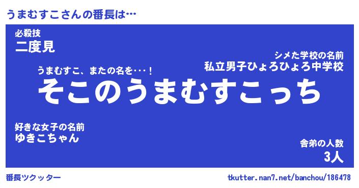 | 2回繰り返すあだ名 | 『うまうま』『ううまま』『ねちねち』 |