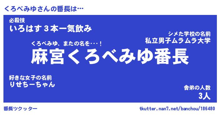 | 肩書あだ名 | 『くろべみゆ御曹司』『くろべみゆ団長』 |