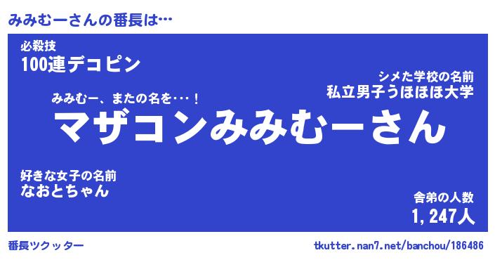 | 肩書あだ名 | 『みみむー御曹司』『みみむー国家主席』 |