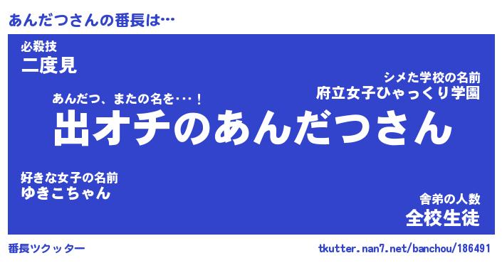 | 意味不明あだ名 | 『ペロリンあんだつ』『永久保存あんだつ』 |
