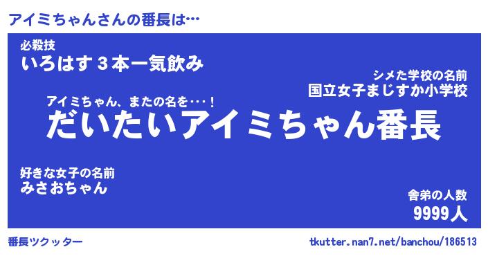 | ヒーロー風カッコイイあだ名 | 『スーパーアイミチャン』『天弓騎士アイ』 |