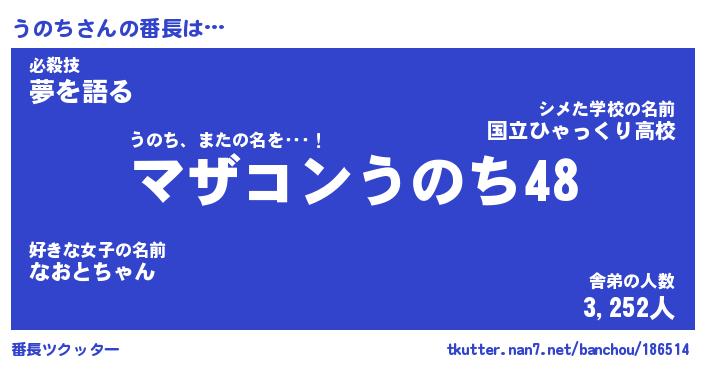 | ヒーロー風カッコイイあだ名 | 『スーパーウノチ』『ウルトラうのちマン』 |
