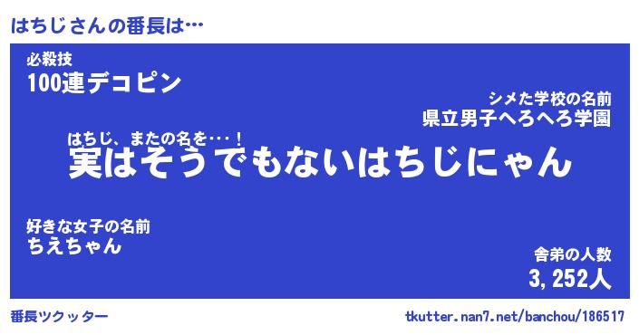 | 意味不明あだ名 | 『ペロリンはちじ』『はちじフォーエバー』 |