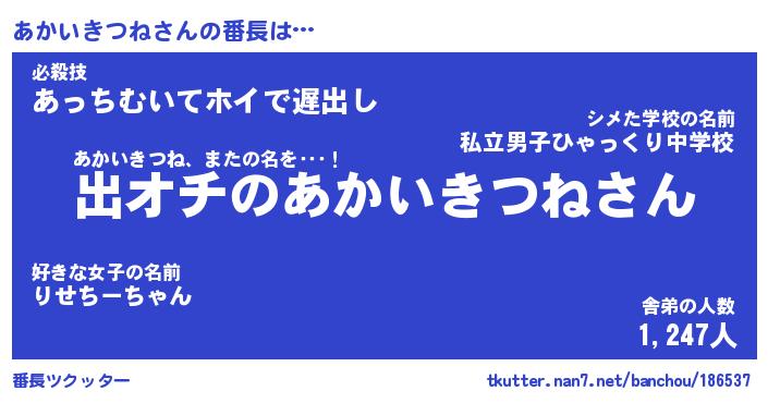 | ヒーロー風カッコイイあだ名 | 『スーパーアカイキツネ』『炎刃騎士アカ』 |
