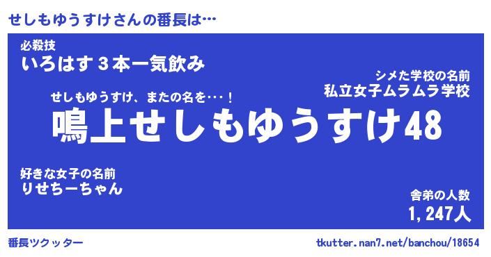 | 意味不明あだ名 | 『ペロリンせしもゆうすけ』 |