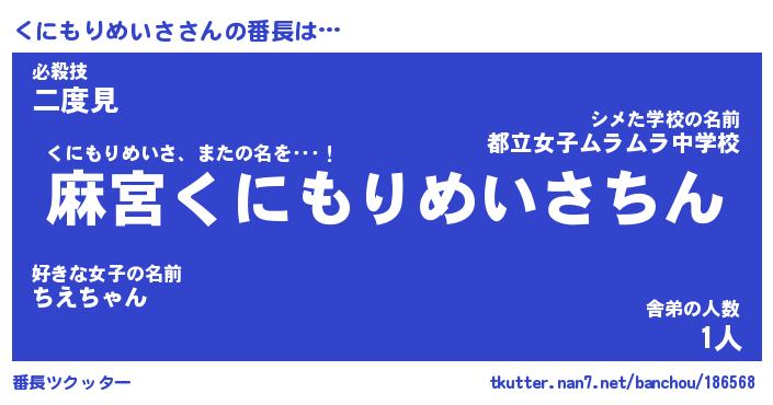 ヘコむあだ名 | 『くにもー』『酢こんぶ』『くにお』 |