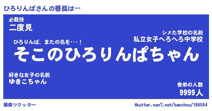 | ヒーロー風カッコイイあだ名 | 『スーパーヒロリンパ』『天弓騎士ヒロ』 |