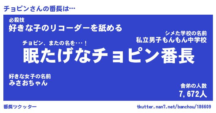 | 意味不明あだ名 | 『ペロリンチョピン』『永久保存チョピン』 |