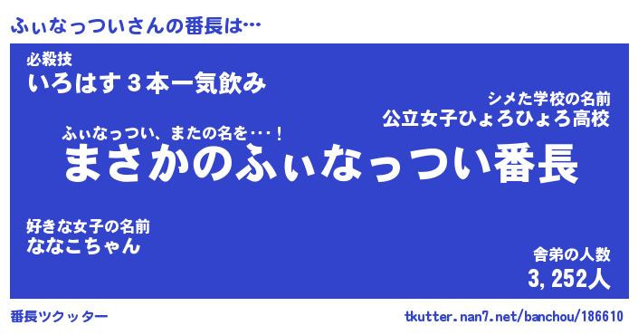 | 肩書あだ名 | 『ふぃなっつい店長』『ふぃなっつい団長』 |