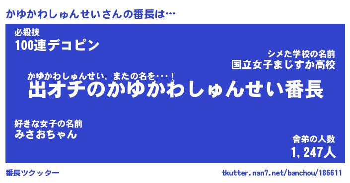 | 伝説のあだ名 | 『伝説のスナイパーかゆかわしゅんせい』 |