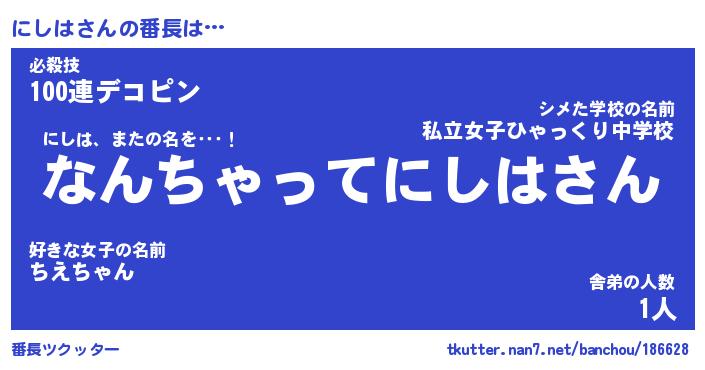 | 肩書あだ名 | 『にしは店長』『にしは国家主席』 |