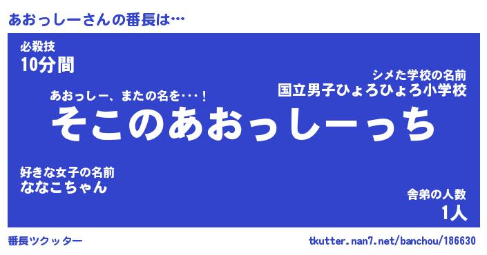 | 伝説のあだ名 | 『不死鳥のスナイパーあおっしー』 |