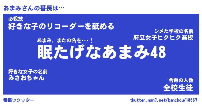 | 伝説のあだ名 | 『封印されしスナイパーあまみ』 |