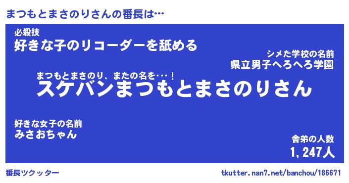 | 肩書あだ名 | 『まつもとまさのり社長令嬢』 |