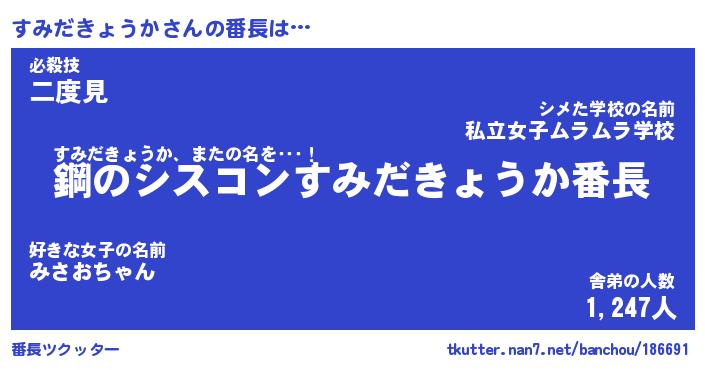 | 男性向けラノベタイトル風あだ名 | 『スミダキョウカアートオンライン』 |