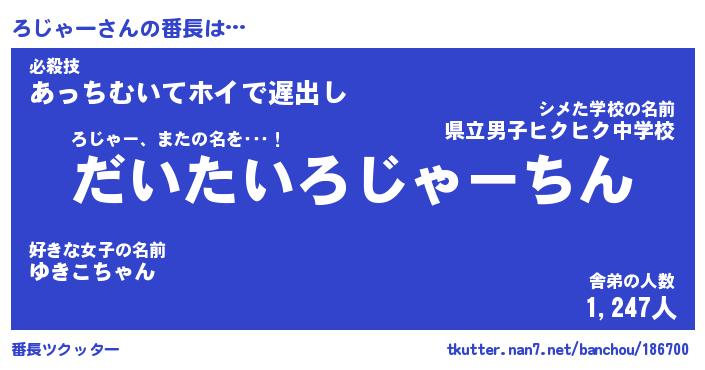 | 主人公の名前は?『ろじんちゃん』 |