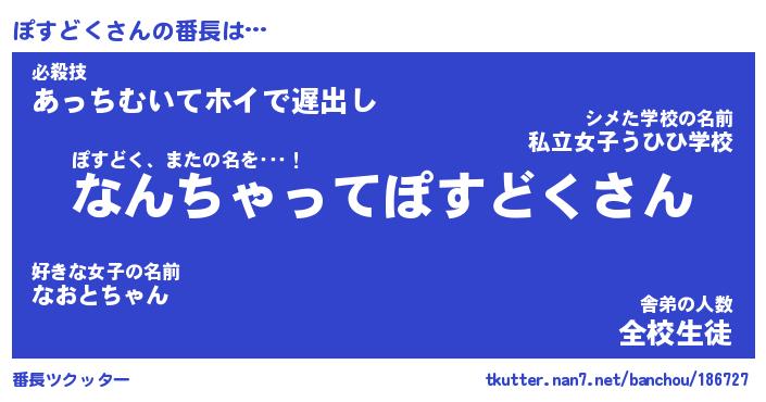 | 伝説のあだ名 | 『伝説のスナイパーぽすどく』 |
