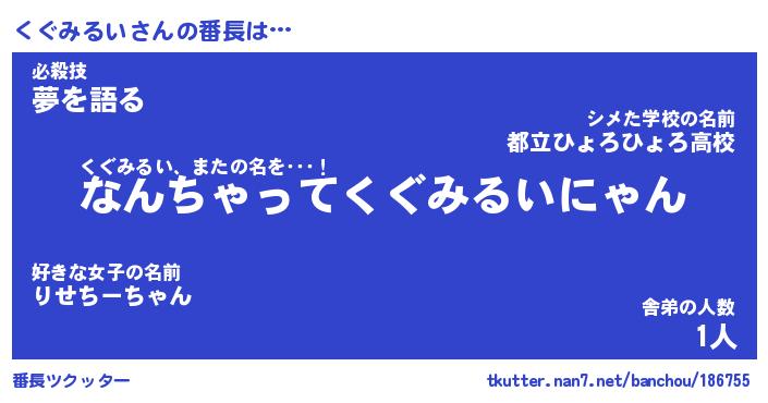 | 伝説のあだ名 | 『伝説のスナイパーくぐみるい』 |