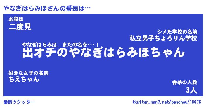 | ヒーロー風カッコイイあだ名 | 『スーパーヤナギハラミホ』 |