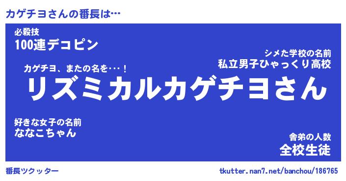 | 意味不明あだ名 | 『ペロリンカゲチヨ』『永久保存カゲチヨ』 |