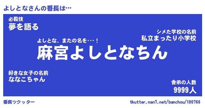 | 意味不明あだ名 | 『ペロリンよしとな』『永久保存よしとな』 |